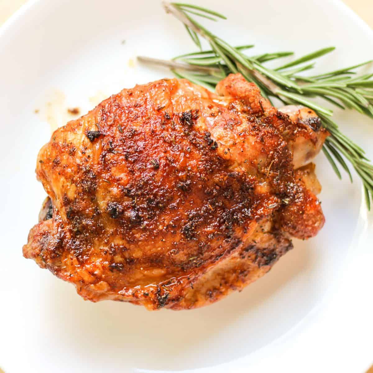 Air fryer turkey thighs are seasoned with a homemade poultry dry rub before being air fried until crispy on the outside and juicy inside.